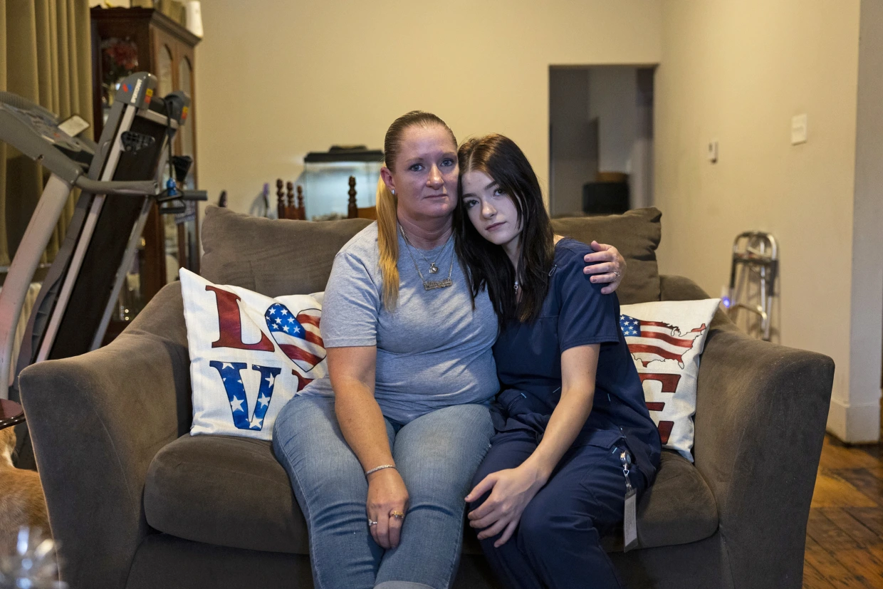 Miltreda Kress hugs her daughter, Brianna Donahue, in front of their home in Philadelphia.Rachel Wisniewski / for NBC News